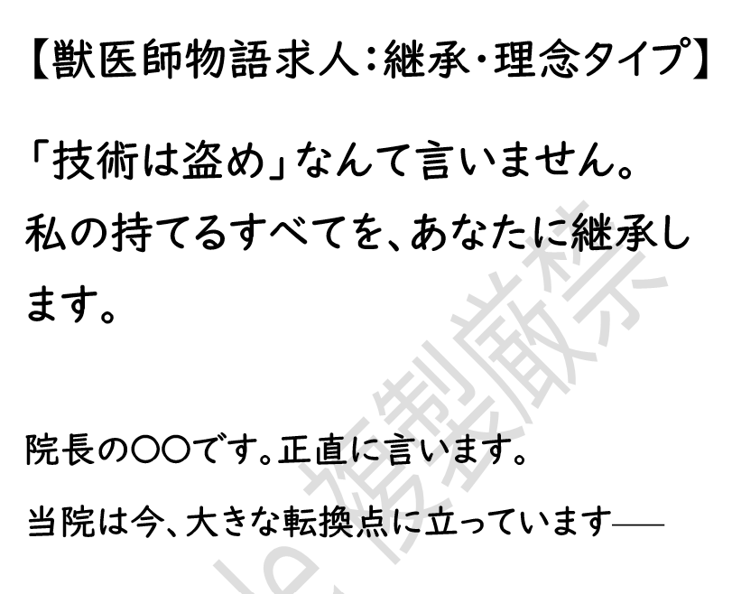 - サービス名:獣医師採用専用「物語」作成プラン